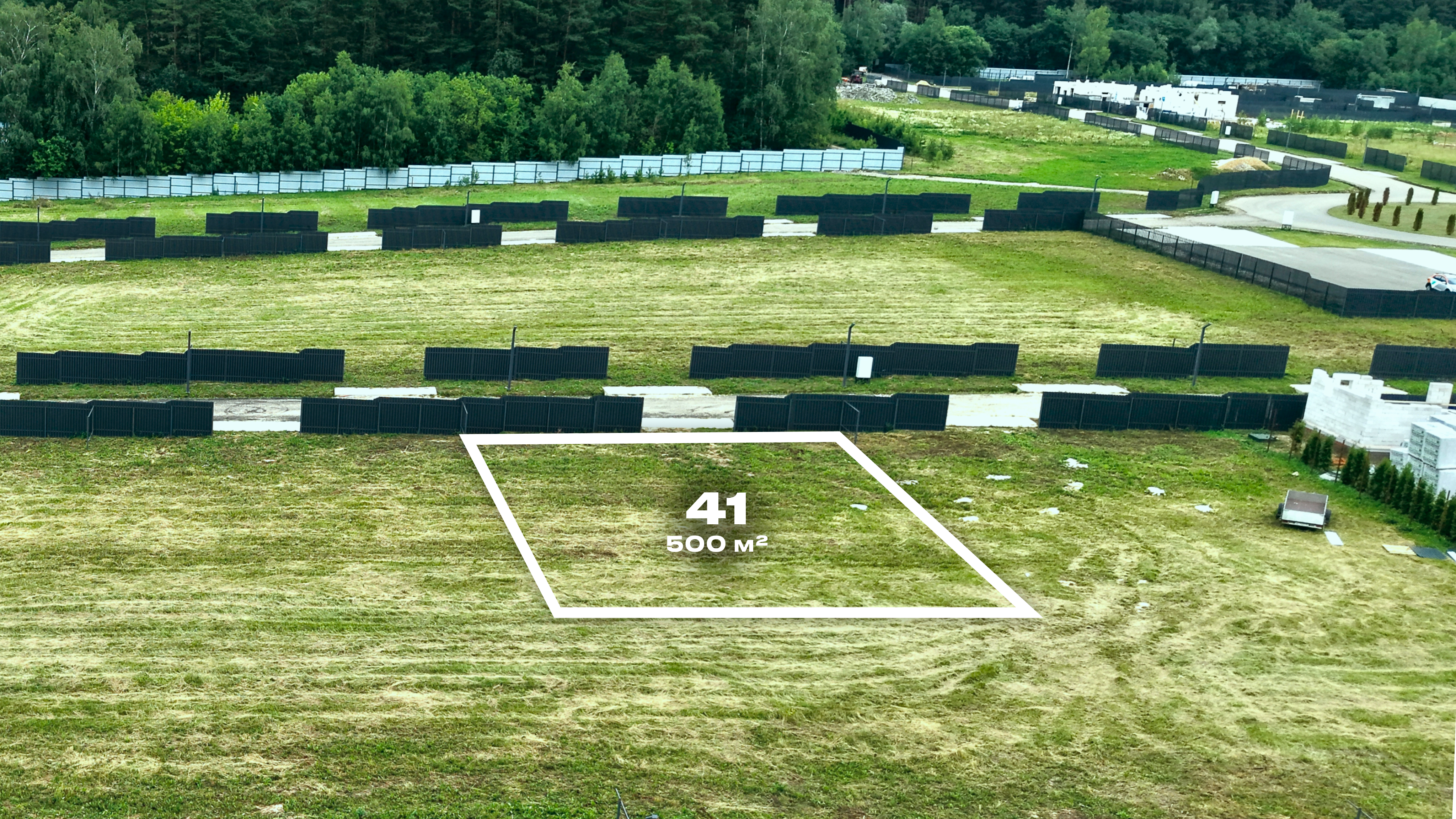 Участки подготовлены к строительству: подведены коммуникации, выполнено благоустройство. Скрытая подземная проводка не портит вид, а заборы в едином стиле создают аккуратный и современный облик поселка.